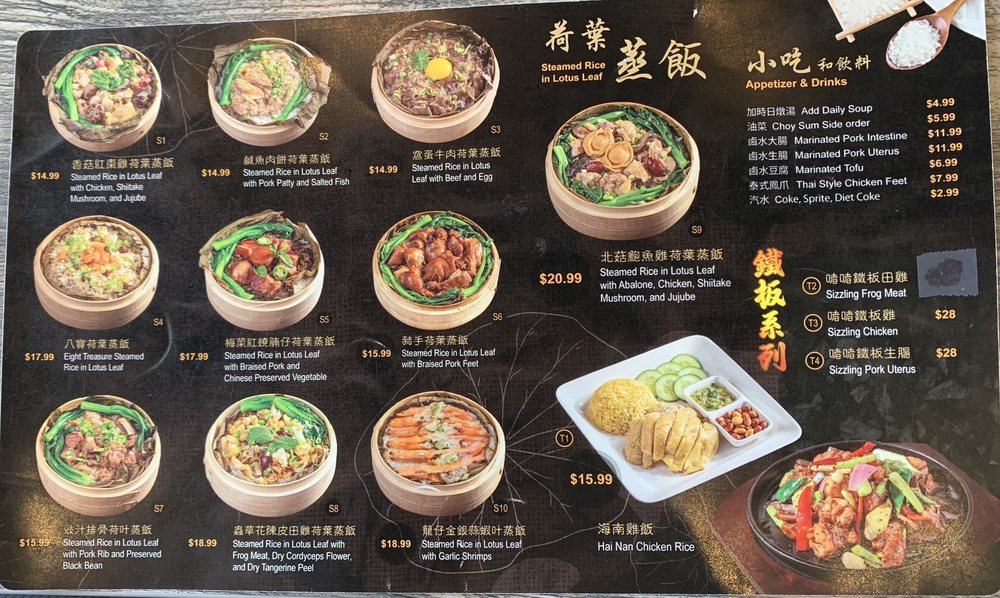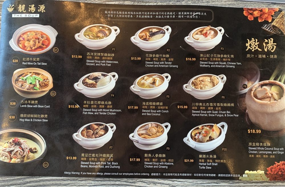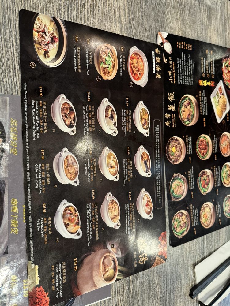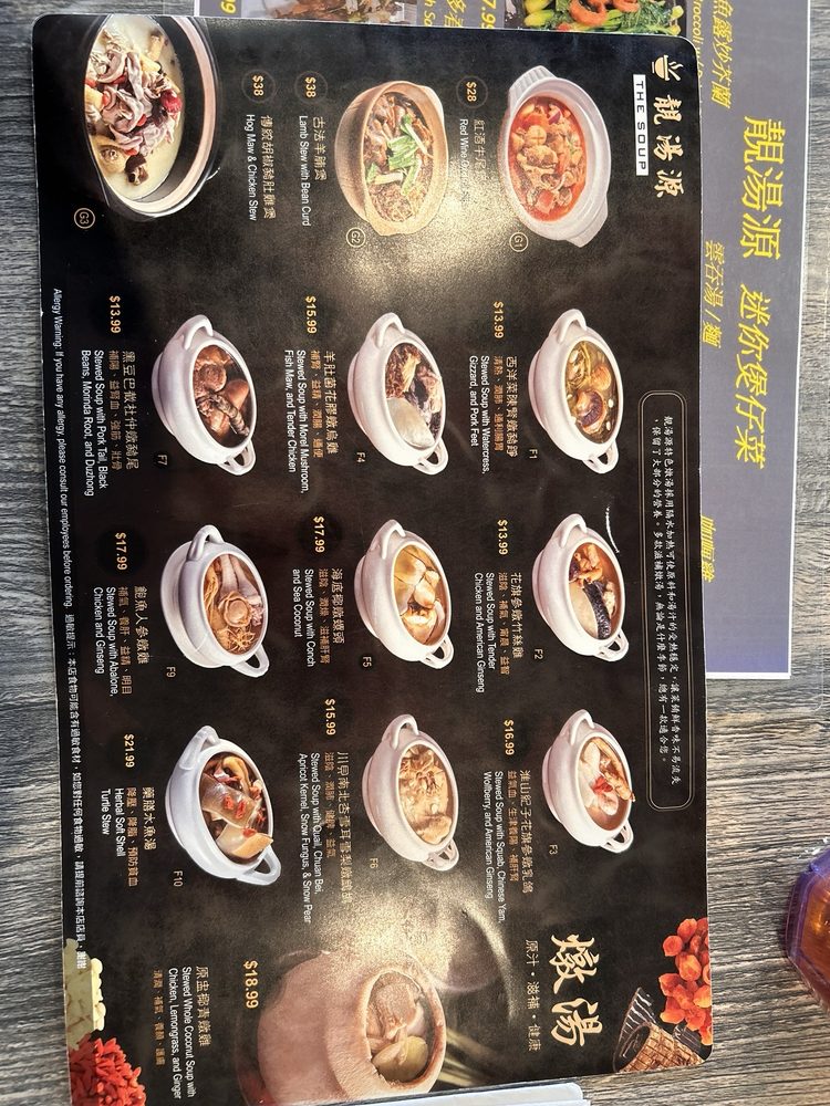 The Soup, located in San Francisco, offers a Chinese soup dining experience with a range of traditional options. The menu includes Chinese herbal teas, marinated pork dishes, and Thai-style chicken feet as appetizers. The Lotus Leaf Steamed Rice menu features unique combinations like Eight Treasure Steamed Rice and Steamed Rice with Braised Pork Feet. The Stewed Soup menu offers a variety of options like Watercress/Gizzard/Pork Feet soup and Morel Mushroom/Tender Chicken soup. Customers praise the flavorful dishes like Hainan chicken rice and abalone shiitake mushroom chicken rice, as well as the stewed soups like American ginseng chicken soup. The ambiance is welcoming, with attentive service and a casual setting. The Soup's authentic Chinese soups and rice dishes make it a must-visit for soup enthusiasts seeking traditional flavors.